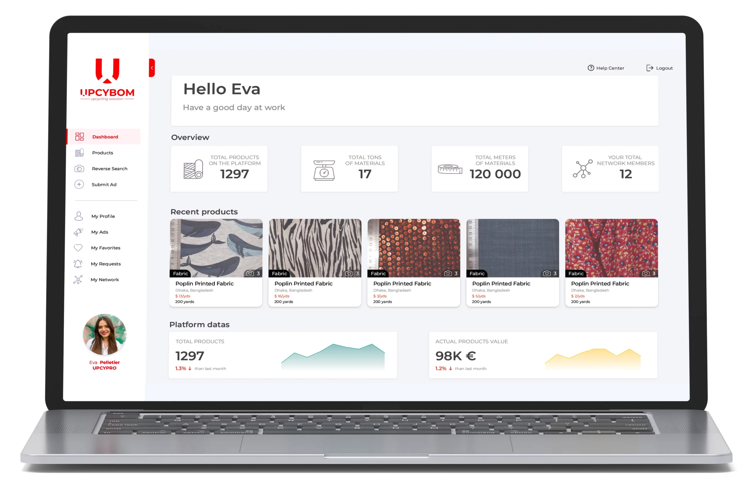Opening the Dashboard will give you an overview of all the products ready to be upcycled.