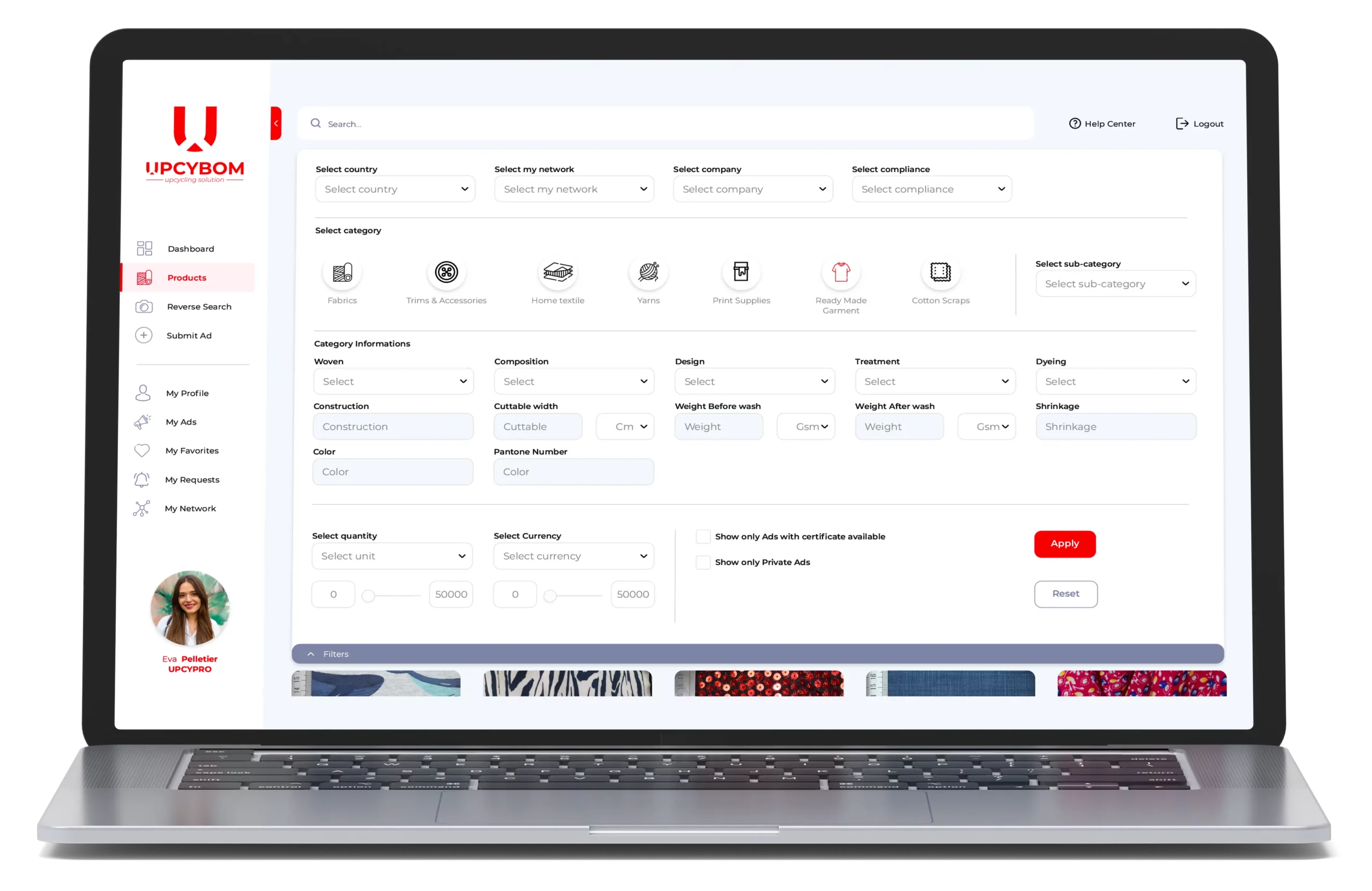 When you have found the product that you like, you can find all the details of the fabric and contact your factories directly from the platform.